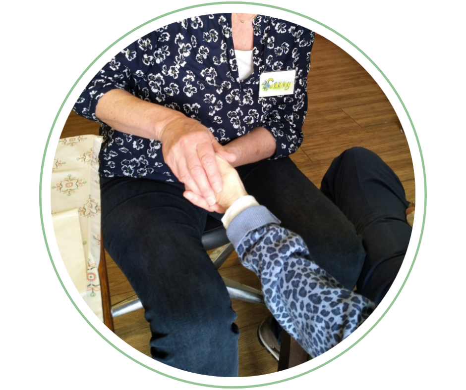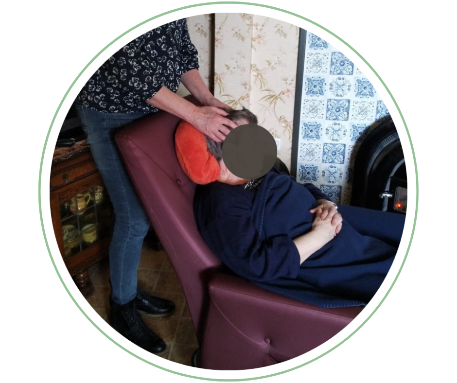 Handmassage is een rustige, respectvolle aanraking waarbij de handen zacht worden gemasseerd. Dit helpt om spanning te verminderen, het gevoel van veiligheid te vergroten en een moment van ontspanning te bieden.